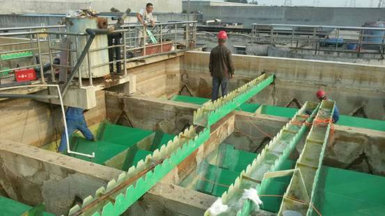 沉淀結束后,置于反應池末端的潷水器開始工作,自上而下逐漸排出上清液。此時反應池逐漸過渡到厭氧狀態(tài)繼續(xù)反硝化。